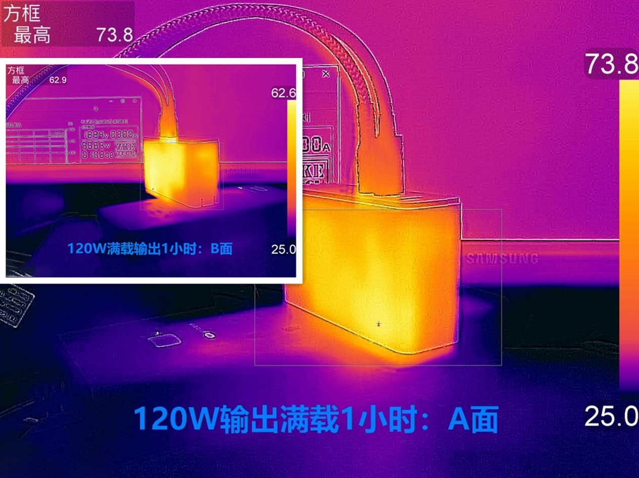 接口上面120W GaN實力的展示,有點秀肌肉的感覺,氮化鎵功率器件120W充電器,接觸過氮化鎵充電器的人一看就明白,但不排除普通用戶看了一臉懵逼。